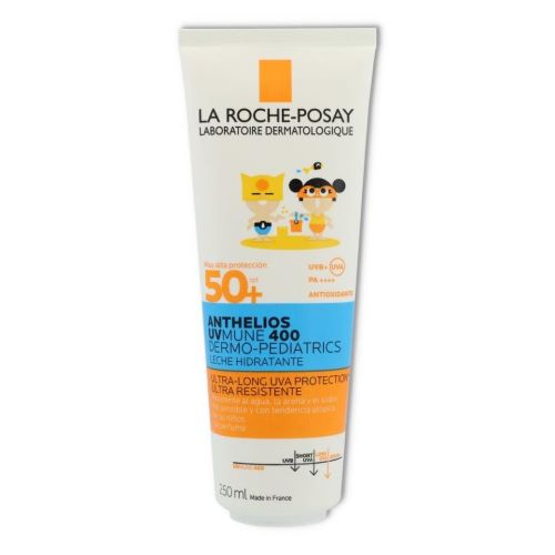 La Roche-Posay Anthelios UVMUNE 400 Dermo-Pediatrics Leche Hidratante SPF50+ 250ml es un protector solar especialmente diseñada para proteger la piel sensible de los niños frente a las agresiones de los rayos UVA y UVB solares.
