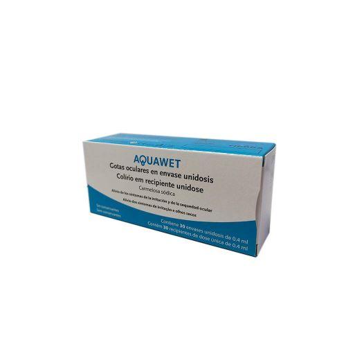 AQUAWET 30 monodosis, es una solución acuosa isotónica, y estéril de Carmelosa sódica al 0.5% en gotas oculares contenidas en envases unidosis de 0.40ml.