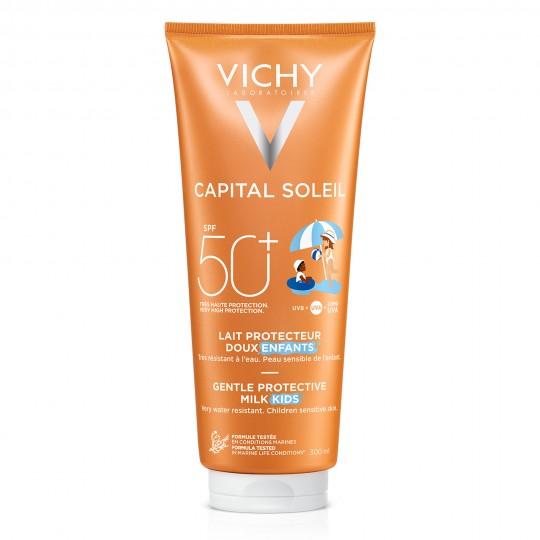 La Leche Solar de Niños con SPF50 es el protector solar infantil que proporciona una alta protección para aplicar sobre la piel de los niños. Vichy integra a la leche solar de niños un sistema de filtros de gran espectro UVA/UVB y fotoestable. De esta forma, la piel está protegida de los posibles daños que puedan provocar las quemaduras solares sobre la piel de los niños. La leche de Niños ha de aplicarse justo antes de la exposición solar y debe renovarse con frecuencia y de forma generosa por todo el cuerpo después de cada baño.