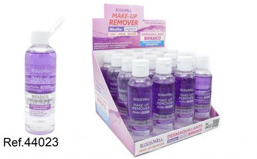 Desmaquillante bifasico que elimina el maquillaje waterproof para ojos, labios y rostro. Suave con los ojos. Para todo tipo de piel. Sin acabado graso.