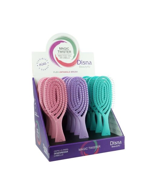 Modo de empleo : Para utilizar el Cepillo Pelo Disna Desenreda Magic Twister, simplemente peina el cabello de forma suave y delicada, desenredando los nudos con movimientos suaves y circulares. Puedes utilizarlo tanto en cabello seco como húmedo, y es ideal para todo tipo de cabello, ya sea liso, ondulado o rizado.