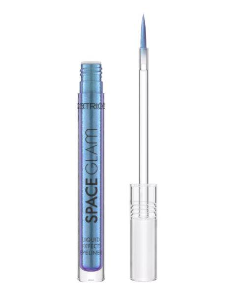 Crea un look de maquillaje llamativo con el eyeliner líquido Space Glam 030 Cosmic Chrome de Catrice. El eyeliner tiene un tono duocromático que va de púrpura a azul claro y cuenta con una fórmula que dura todo el día. Su punta precisa permite una aplicación perfecta con solo una pasada.