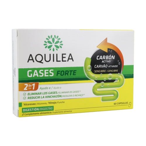 Aquilea gases forte, combinación a base de plantas que favorecen la eliminación de gases y a reducir la sensación de hinchazón, y el carbón activo vegetal que ayuda a eliminar los gases de forma más efectiva.