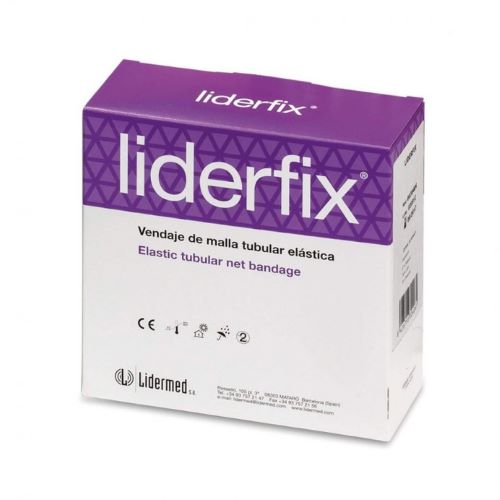 - Vendaje tubular Liderfix de malla elástica de poliéster para sujeción de apósitos.