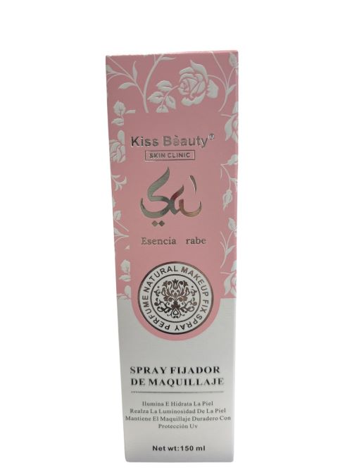 El Spray Fijador de Maquillaje Kiss Beauty – Esencia Arabe es el aliado perfecto para prolongar la duración del maquillaje mientras cuida y embellece la piel. Su fórmula ligera ayuda a fijar el maquillaje, aportando un acabado natural, luminoso y uniforme durante horas.