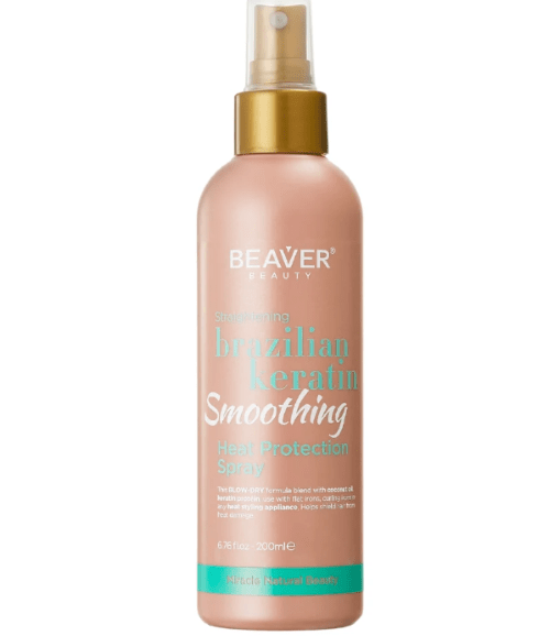 El spray protector térmico de queratina brasileña Beaver es un spray sin aclarado que protege el cabello de los efectos nocivos del calor durante el peinado. Crea una barrera «Heat Defense» que evita que el cabello se reseque y se dañe con aparatos de peinado como planchas, rizadores y secadores.