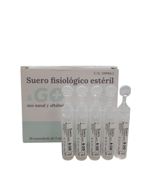 Suero fisiológico para limpieza nasal y ocular.