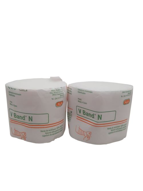 VENDA DE ACOLCHADO VBAND 5 CM X 2,7 M Venda de almohadillado 100% viscosa, con doble capa de tejido sin tejer. Reduce el riesgo de rozaduras y úlceras traumáticas bajo inmovilización rígida. Gran espesor para un mayor efecto de protección. Fácil de rasgar con la mano.