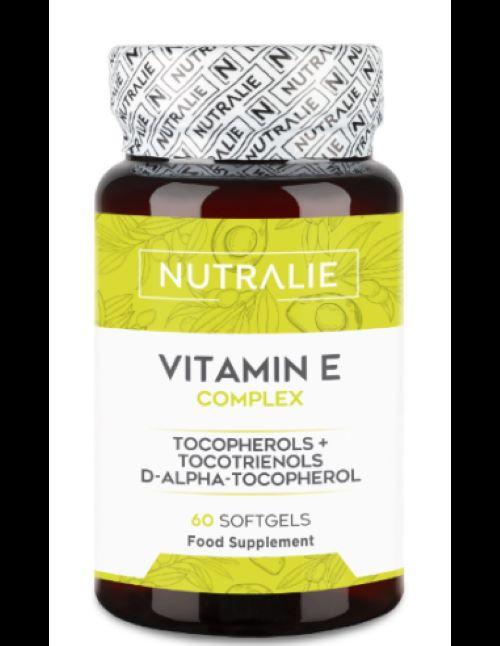 Vitamina E Complex de Nutralie se caracteriza por presentar además del d-alfa-tocoferol, 8 moléculas de tocoferoles y tocotrienoles mezclados en todas sus variantes: alfa, beta, gamma y delta.