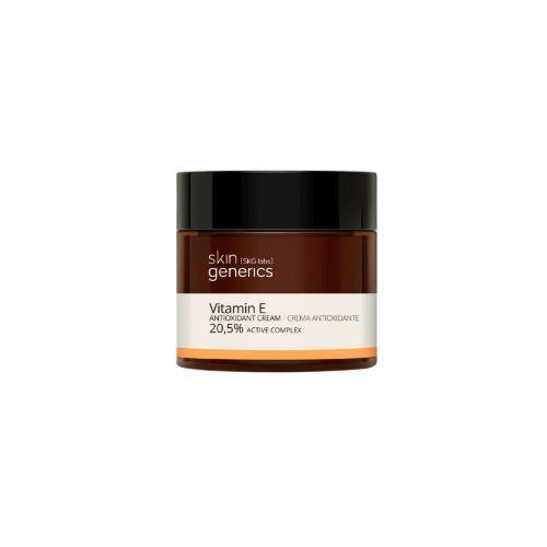 Skin Generics Vitamina E crema antioxidante 20,5% es una Crema-gel que concentra 20,5% de activos antioxidantes que garantizan su efectividad tras su uso continuado. La vitamina E pura, el Lipochroman® y el aceite de arroz bran fomentan la elasticidad, la síntesis de colágeno y eliminan los radicales libres. El ácido hialurónico de bajo peso molecular, y el Lipomoist® hidratan en profundidad, incrementa los niveles de colágeno y suavizan la superficie de la piel.