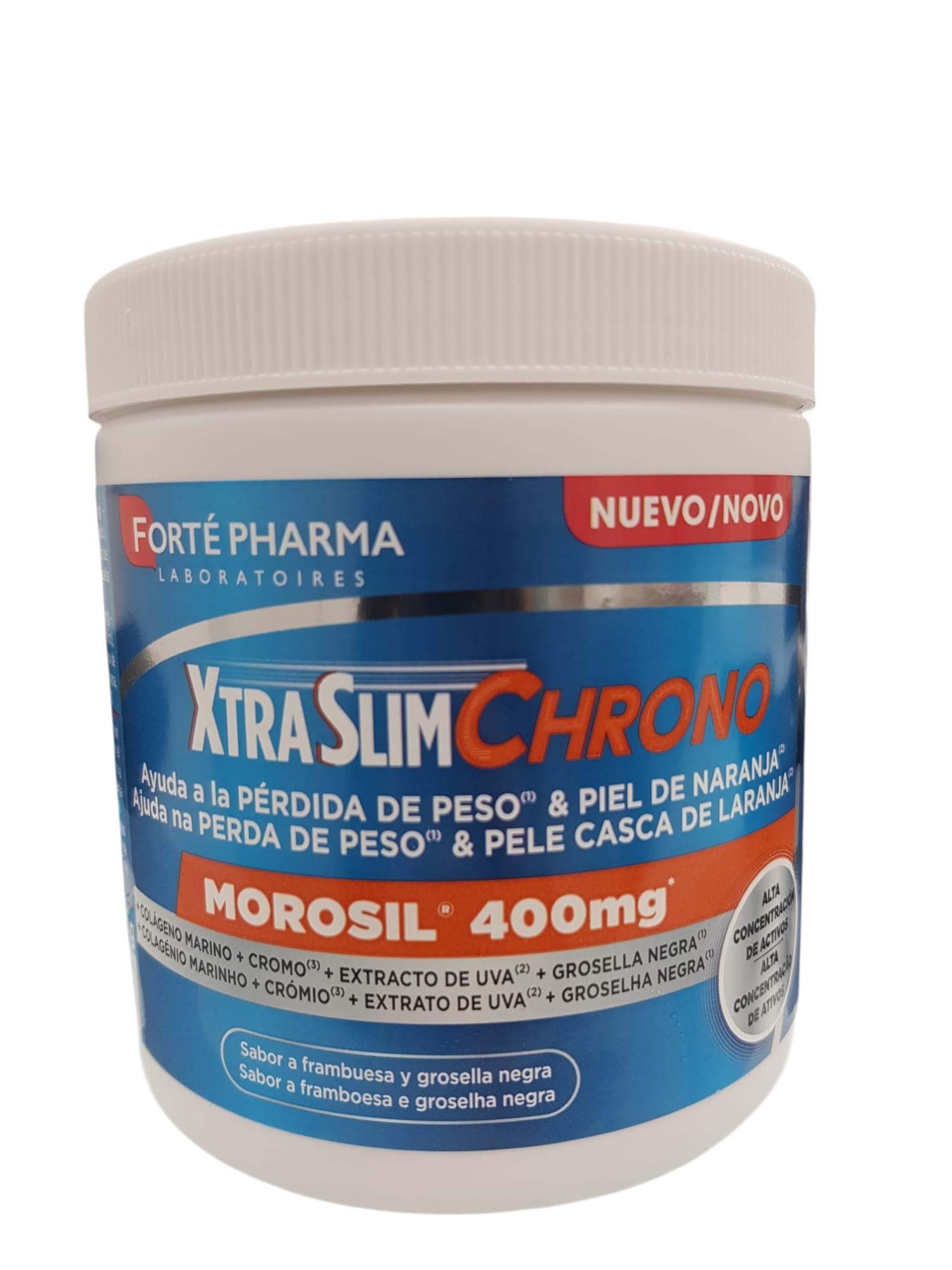 XtraSlim Chrono – Forté Pharma es un complemento alimenticio en polvo diseñado para integrarse fácilmente en la rutina diaria de bienestar. Su formato soluble y su agradable sabor a frambuesa y grosella negra lo hacen cómodo de tomar, ideal para quienes buscan un apoyo extra dentro de un estilo de vida saludable.
